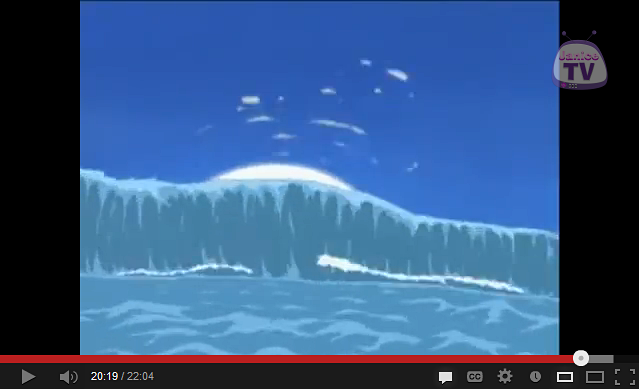 Well, oddly enough, a popular children's cartoon show from 1999/2000 that is currently being re-aired just so happens to demonstrate the 'geoengineering' of a tsunami. And even more interesting is that the way it is shown precisely matches what was revealed in a thirteen year old article published in the New Zealand Herald [dated 9-25-99], reporting on the New Zealand government's declassifying of files detailing secret testing of explosive-generated tsunamis, i.e. 'tsunami bombs', in the 1940's. This tsunami-making program was called "Project Seal":